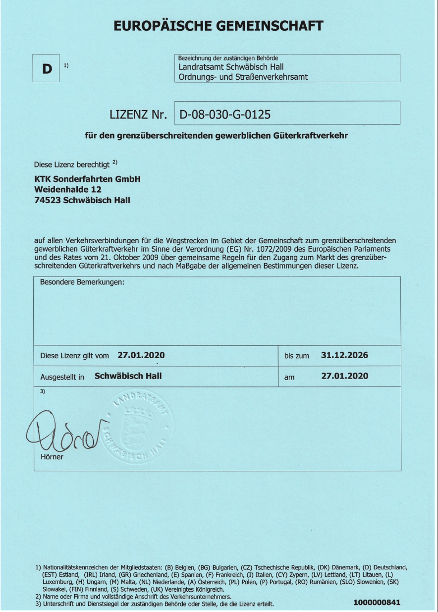 KTK Sonderfahrten GmbH in Schwäbisch Hall IHR PARTNER FÜR DIE BESONDEREN AUFTRÄGE - vom PKW bis zum 40 Tonnen LKW